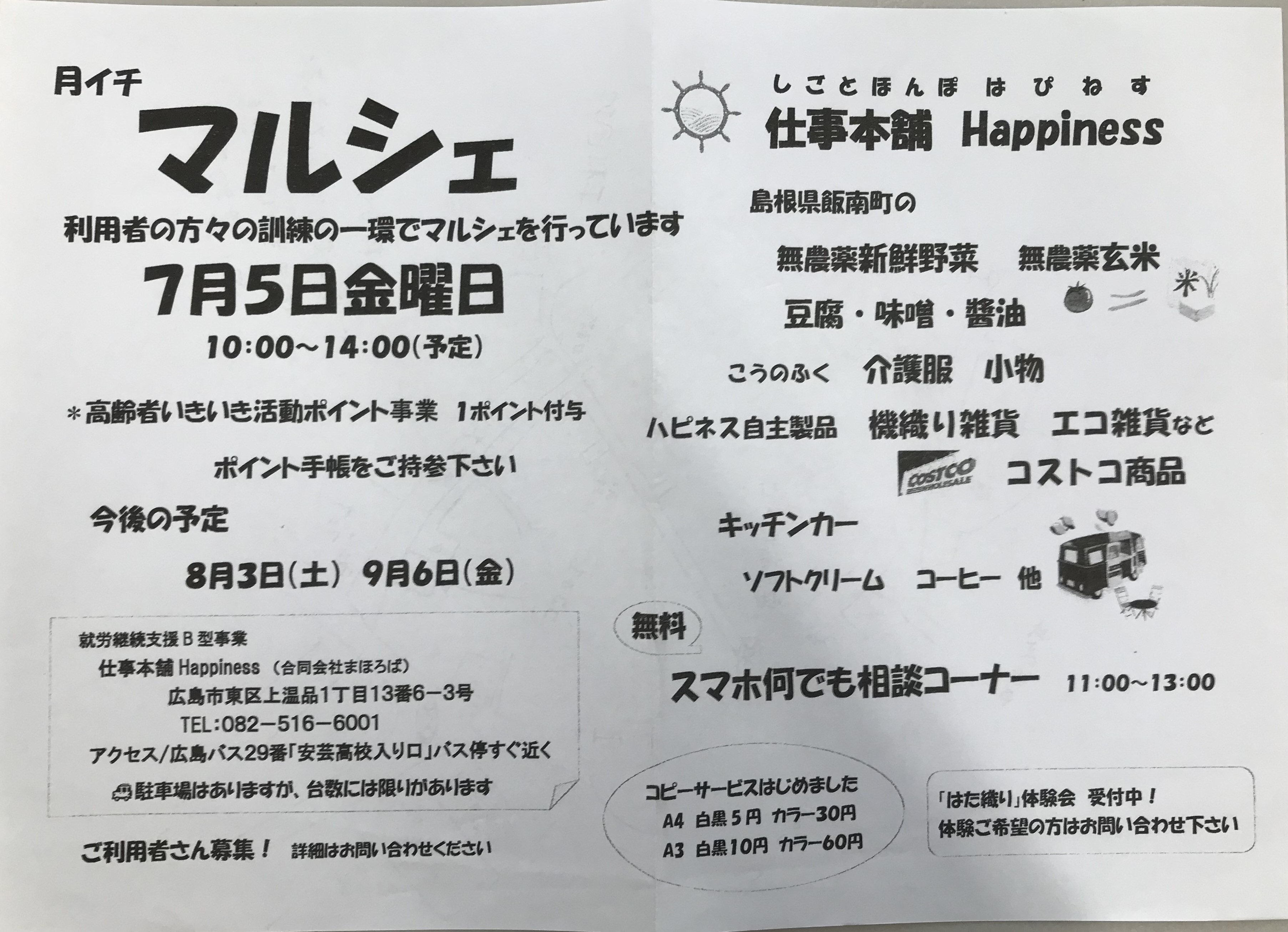 就労継続支援B型事業所 仕事本舗ハピネスは「働きたい」と「やりがい」をサポートします。