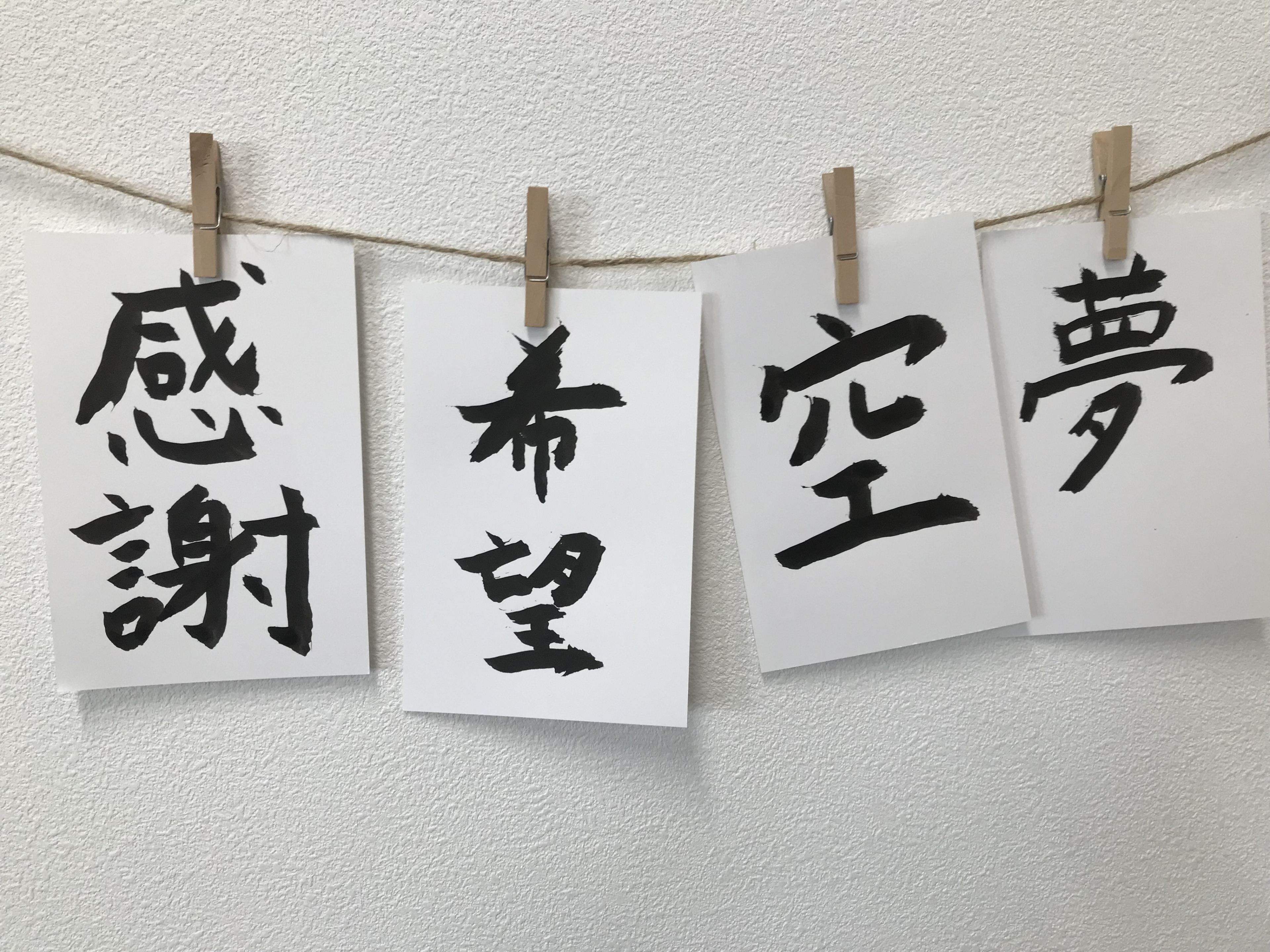 書道が得意な利用者さん。お昼休みに半紙に好きな文字や